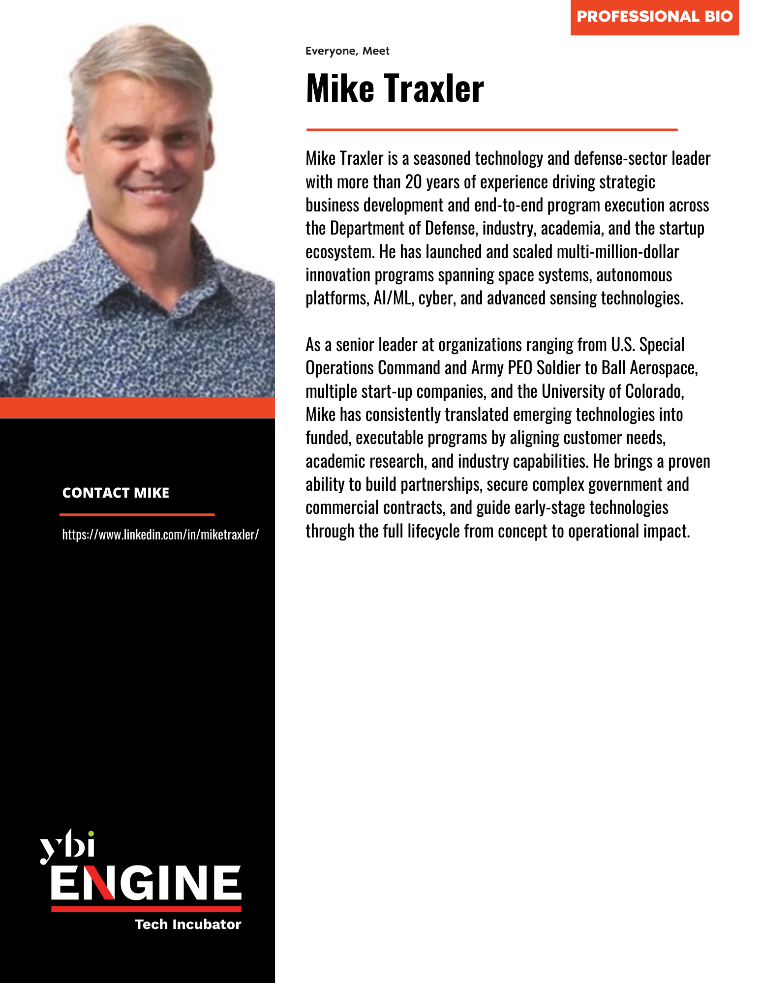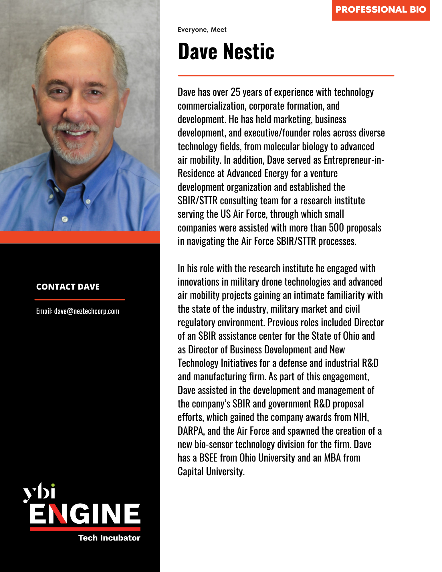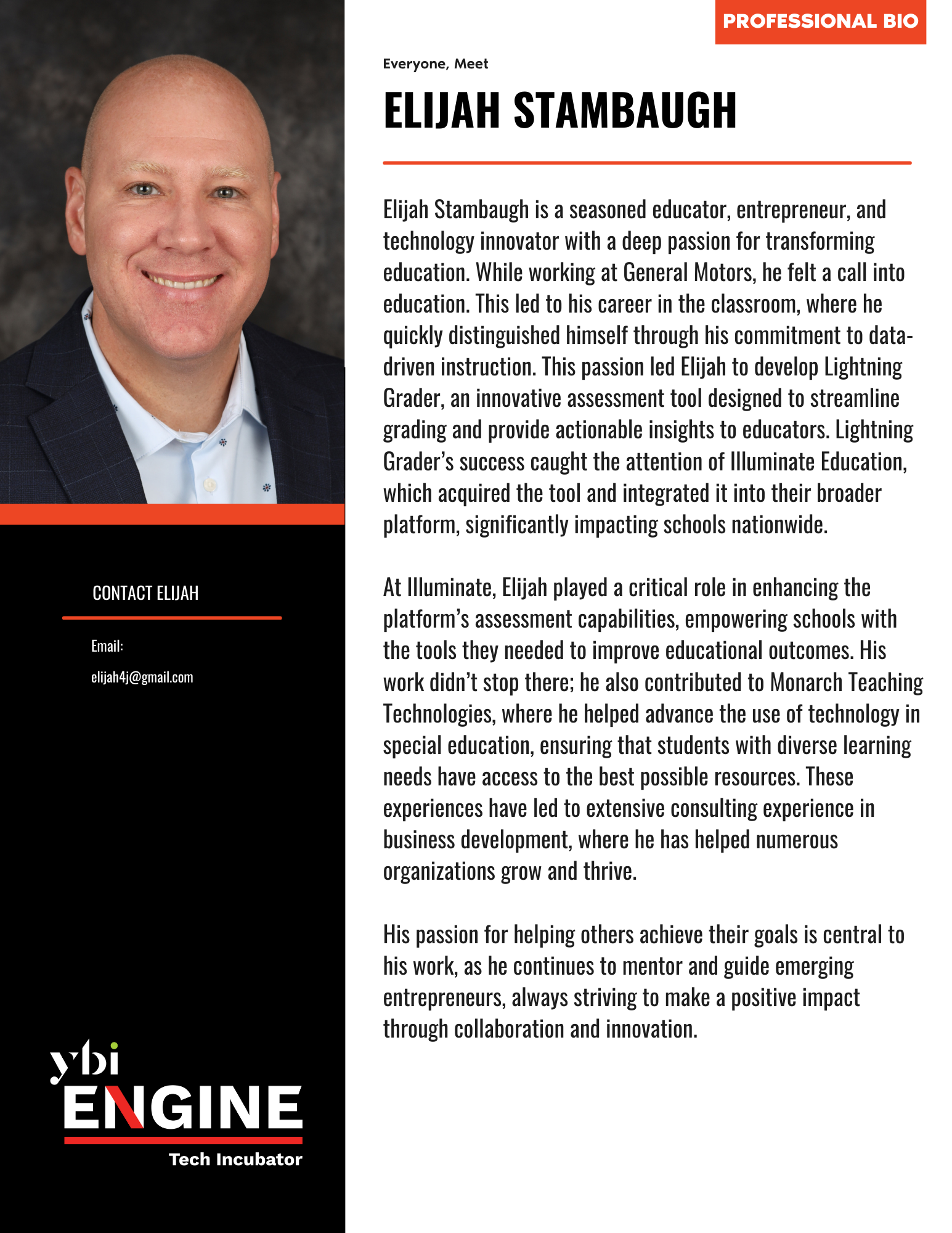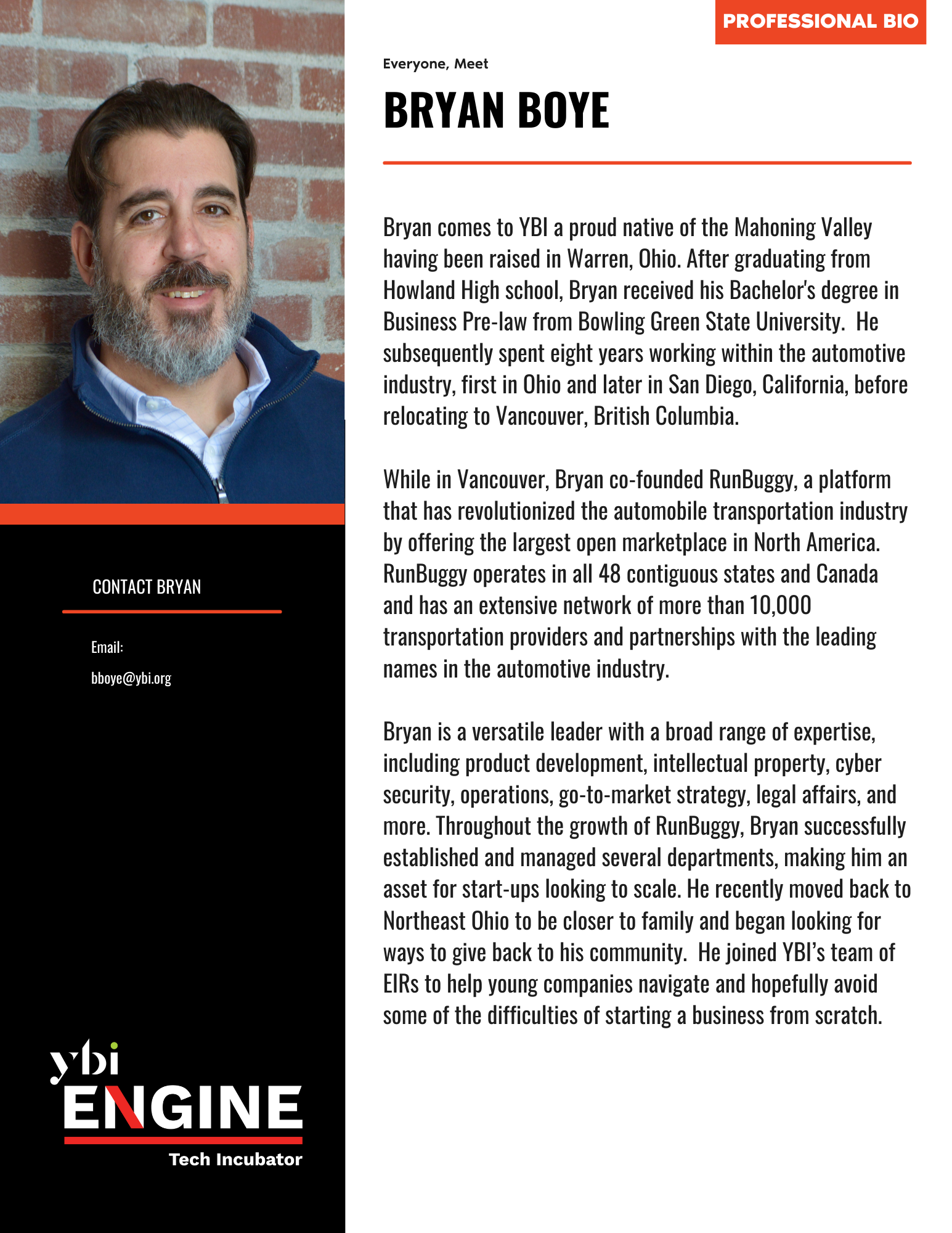 The Engine Tech Incubator Team at YBI is composed of dedicated full-time staff, expert ambassadors, and seasoned Entrepreneurs-in-Residence who collectively bring a wealth of knowledge to support technology-driven entrepreneurs. This diverse team’s expertise spans: